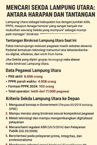 Dengan jumlah aparatur yang besar—lebih dari 11.000 pegawai—Lampung Utara jelas membutuhkan seorang Sekda yang tidak hanya berorientasi pada rutinitas administratif, tetapi visioner, mampu memimpin perubahan, dan melek teknologi.