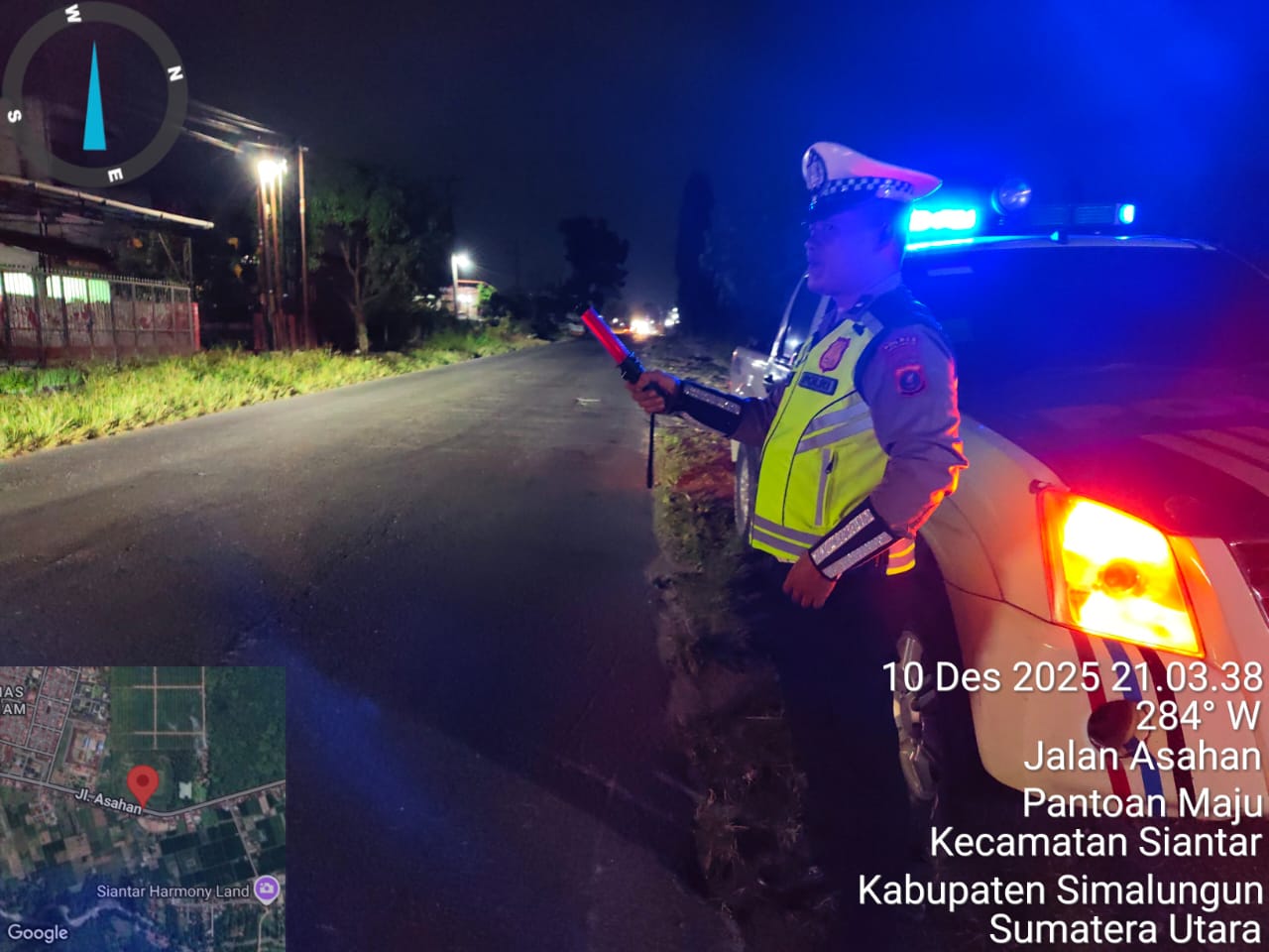 Simalungun — Satuan Lalu Lintas (Sat Lantas) Polres Simalungun kembali menunjukkan komitmennya menjaga keamanan dan ketertiban lalu lintas melalui pelaksanaan Blue Light Patrol (BLP) pada Rabu malam, 12 Desember 2025. Kegiatan yang dimulai pukul 20.00 WIB hingga selesai ini difokuskan di sepanjang jalur Pematang Siantar – Perdagangan, salah satu lintasan utama Kabupaten Simalungun yang rawan aktivitas malam hari.