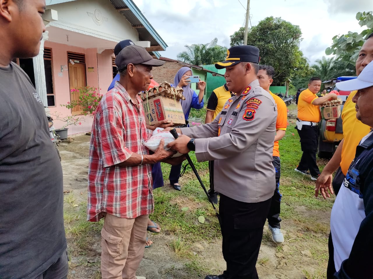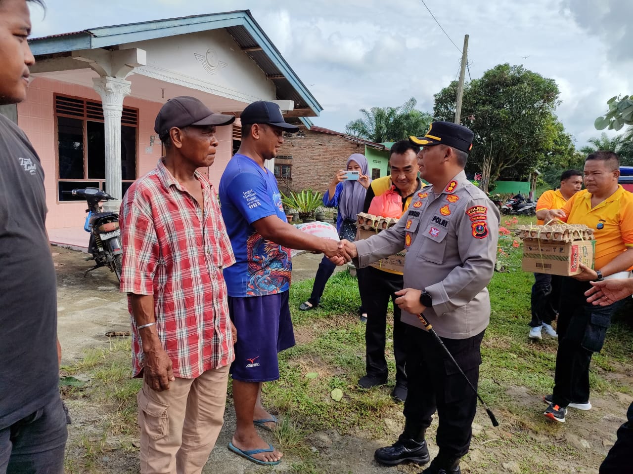Kapolres tiba di lokasi sekitar pukul 09.30 WIB dan langsung bertemu dengan para korban yang rumahnya rusak parah akibat terjangan angin puting beliung pada Jumat (12/12/2025) sekitar pukul 18.00 WIB. Kehadiran Kapolres disambut haru oleh warga karena pimpinan Polres datang langsung melihat kondisi mereka.