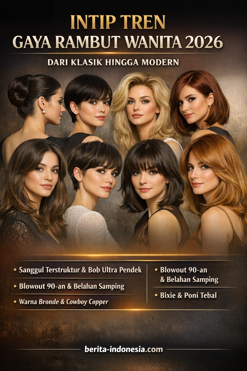 Tren gaya rambut wanita di tahun 2026 diprediksi semakin beragam dengan perpaduan gaya klasik dan modern. Penampilan rambut tidak hanya menjadi pelengkap gaya, tetapi juga cerminan karakter dan kepercayaan diri.