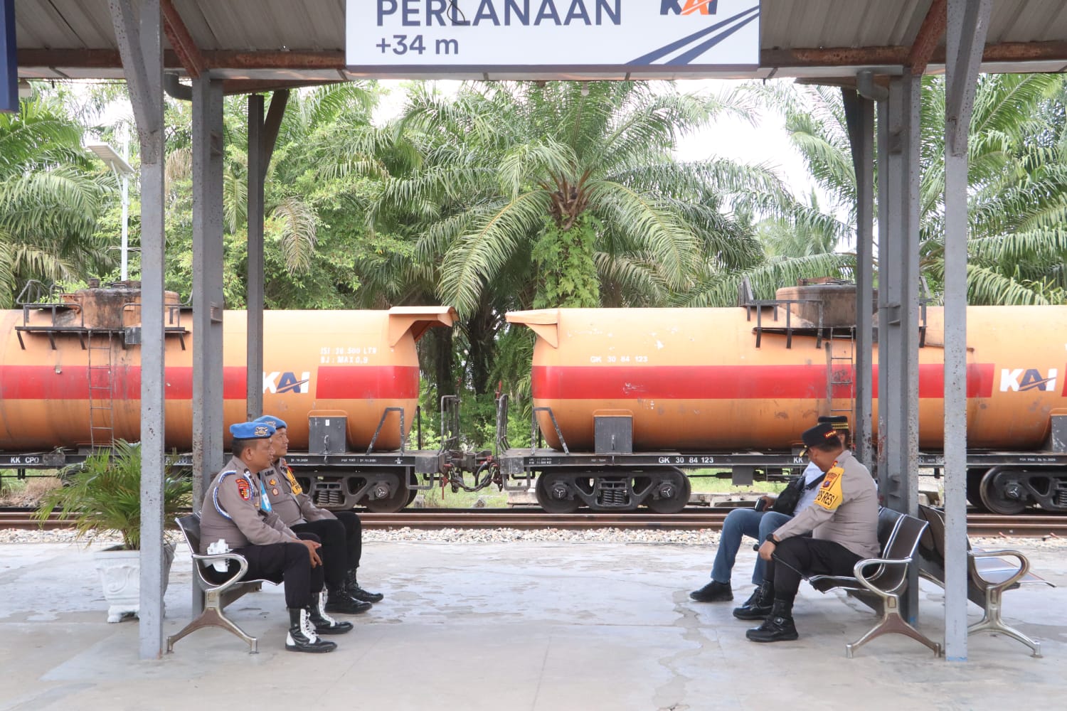 Tidak hanya fokus pada jalur darat, perhatian juga diberikan pada moda transportasi kereta api. Sekitar pukul 15.30 WIB, Kapolres melakukan audiensi dengan petugas PT Kereta Api Indonesia di Stasiun Perlanaan.